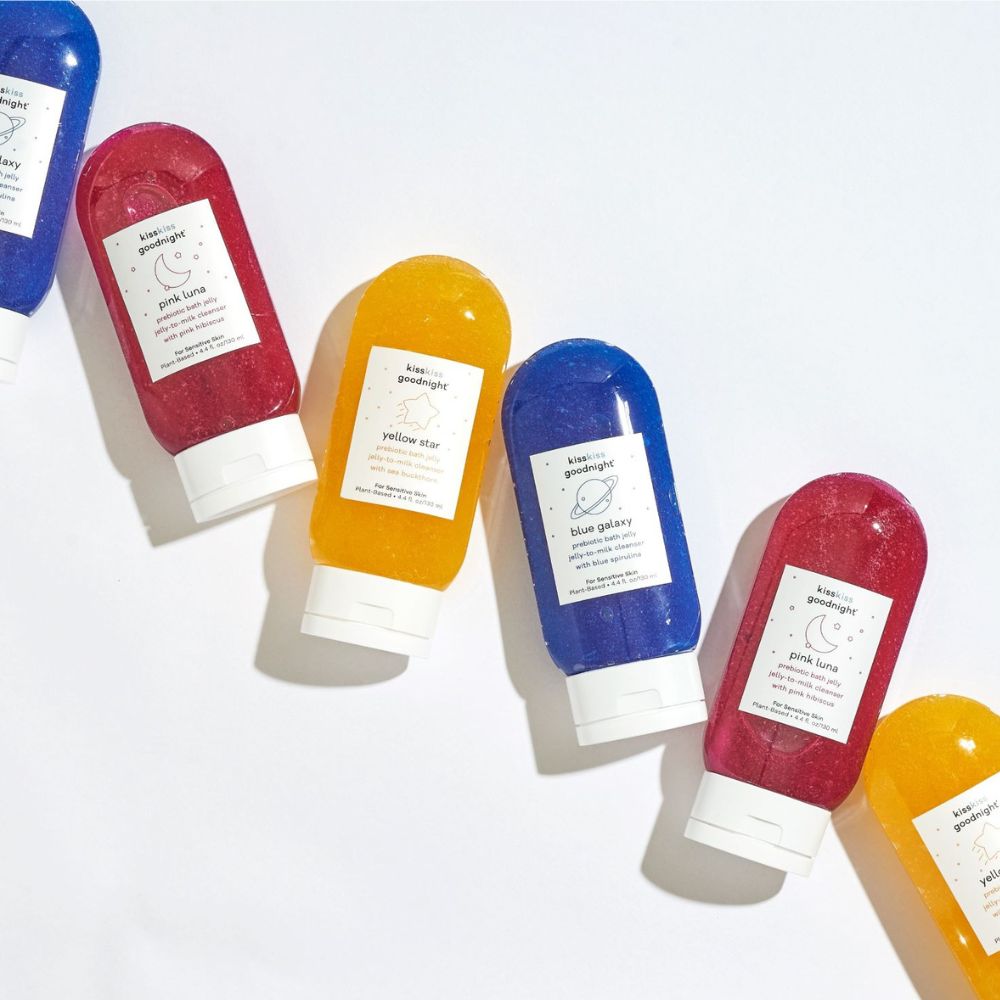 The Lullaby cleanser and jellies are suds-free, oil-based cleansers that transform into milky cleansers in water. The Lullaby cleanser was formulated for babies under one year old in mind.  The jellies are more interactive, and toddlers will enjoy applying them to their skin and watching the bright-colored jelly transform into a white milky cleanser.